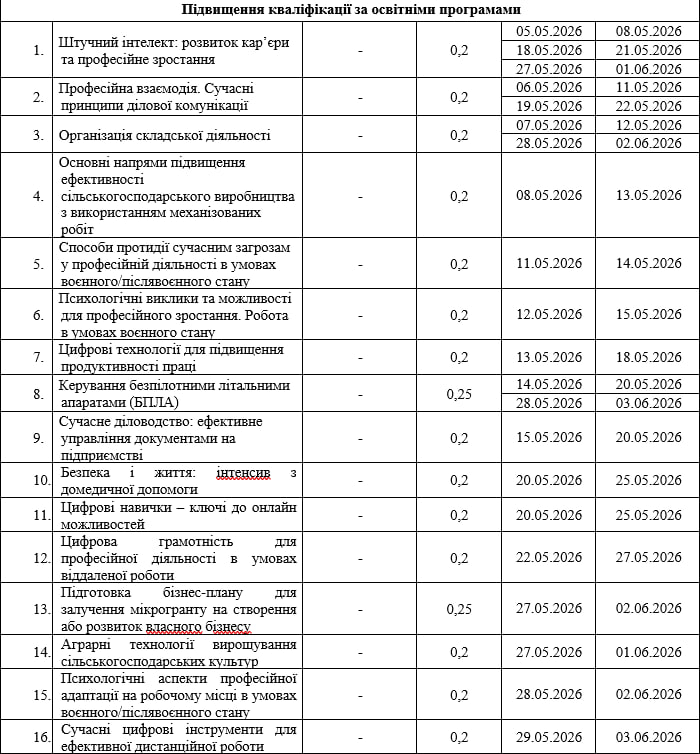 Харківський центр професійно-технічної освіти Державної служби зайнятості запрошує на курси підвищення кваліфікації у травні 2026 року!
