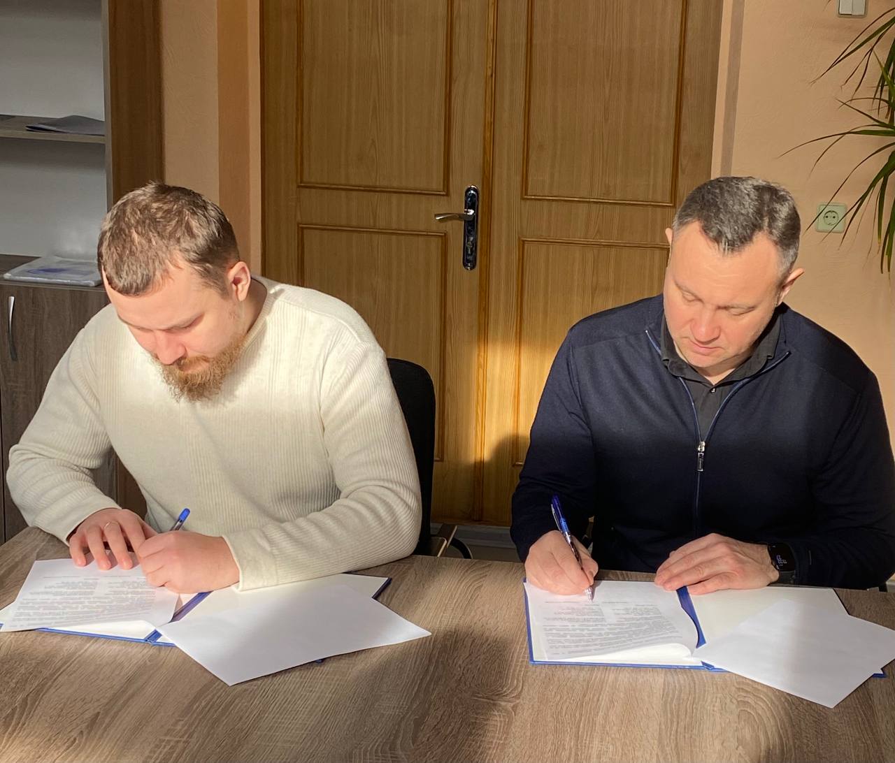 Директор Харківського центру професійно-технічної освіти Державної служби зайнятості Олександр Котуков підписав меморандум про співпрацю з Головою благодійного фонду «Мирне Nebo Харкова» Олексієм Безганом.