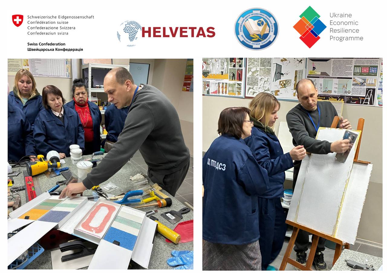 У Харківському центрі професійно-технічної освіти Державної служби зайнятості для слухачів, які навчаються за освітньою програмою «Штукатурні роботи з нанесенням декоративних штукатурок», відбувся практичний воркшоп на тему: «Створення ефектів травертину та бетону в декоративних штукатурках». Захід пройшов за підтримки Helvetas Swiss Intercooperation https://www.facebook.com/helvetas.ukraine .