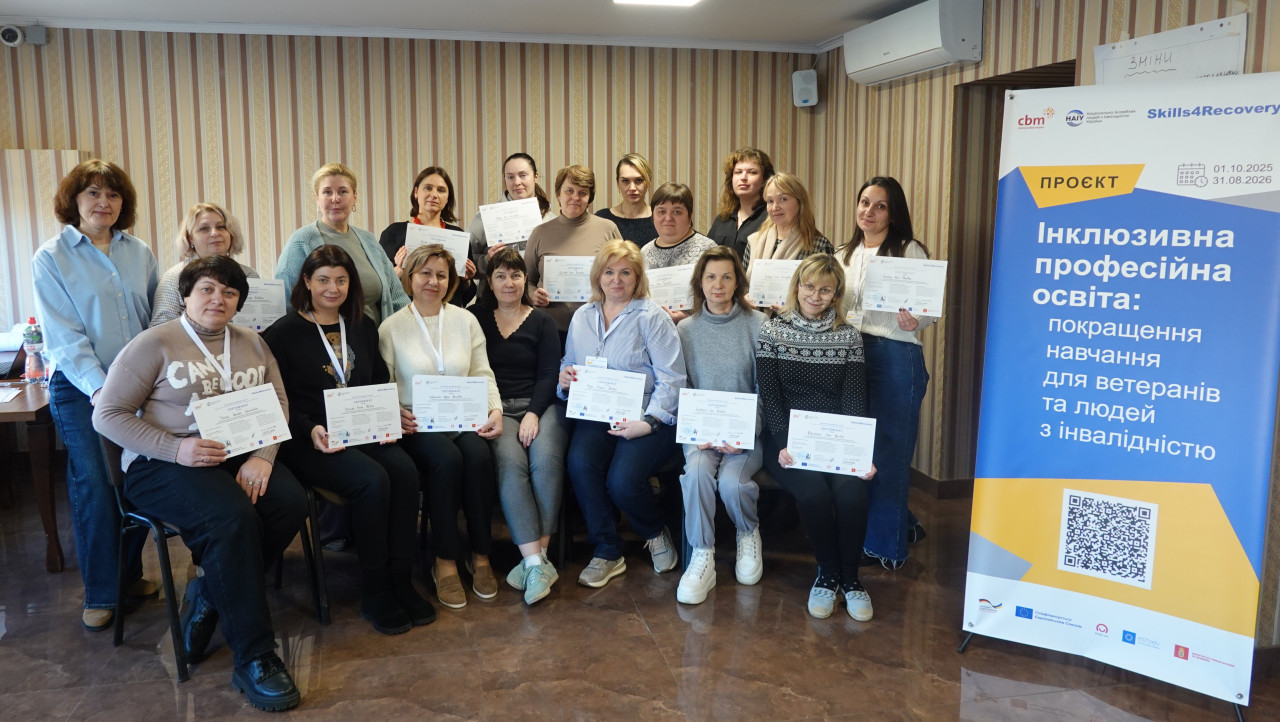 Навчання відбулося в межах проєкту «Інклюзивна професійно-технічна освіта: поліпшення навчання для ветеранів та людей з інвалідністю» та було спрямоване на підвищення спроможності педагогічних і управлінських команд закладів освіти впроваджувати сучасні інклюзивні практики.